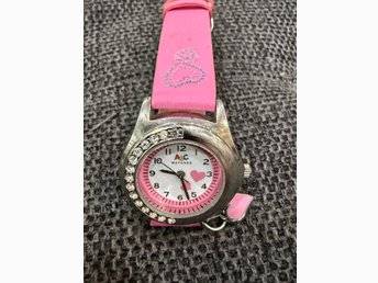 Ny Barn klocka med röd urtavla och rött plast armband med färgade hjärtan