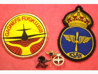 TYGMÄRKEN * KSAK * GAGNEFS FLYGKL. SAMT FLYGPINS, BLA. G MED VINGAR, SE BILDER