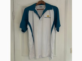 Vit/turkos pikétröja, storlek XL
