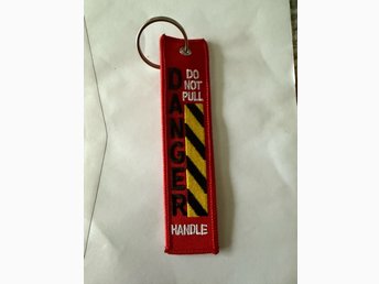 Nyckelring med flygtema - Danger Do Not Pull Handle - NY