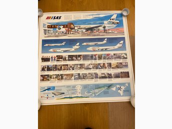 Stor retro vintage poster/plansch/affisch SAS flygbolag och flotta