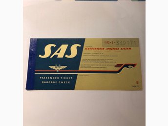Äldre SAS Passenger Ticket biljett 1957 jättefint bevarad