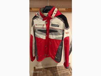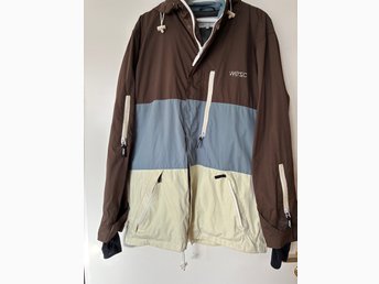 Montec vit/grå/ljusblå jacka och byxor storlek S.